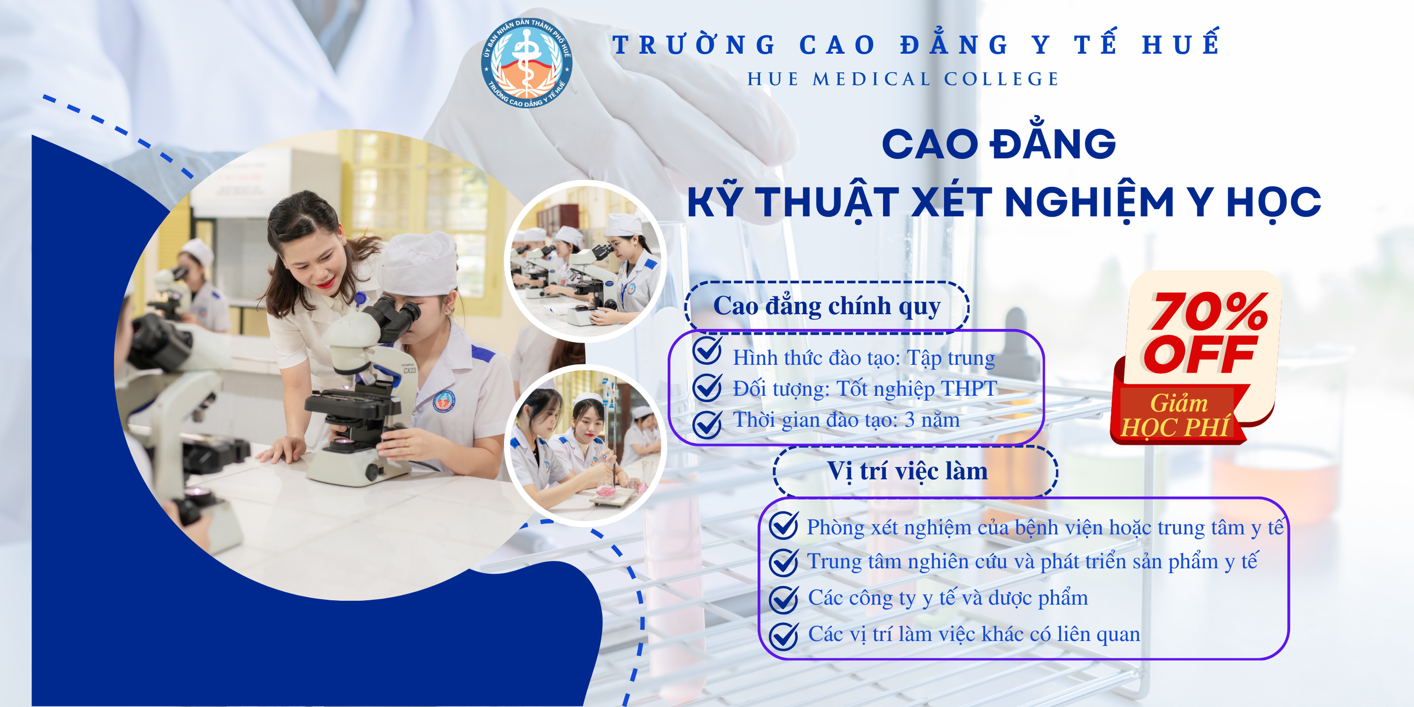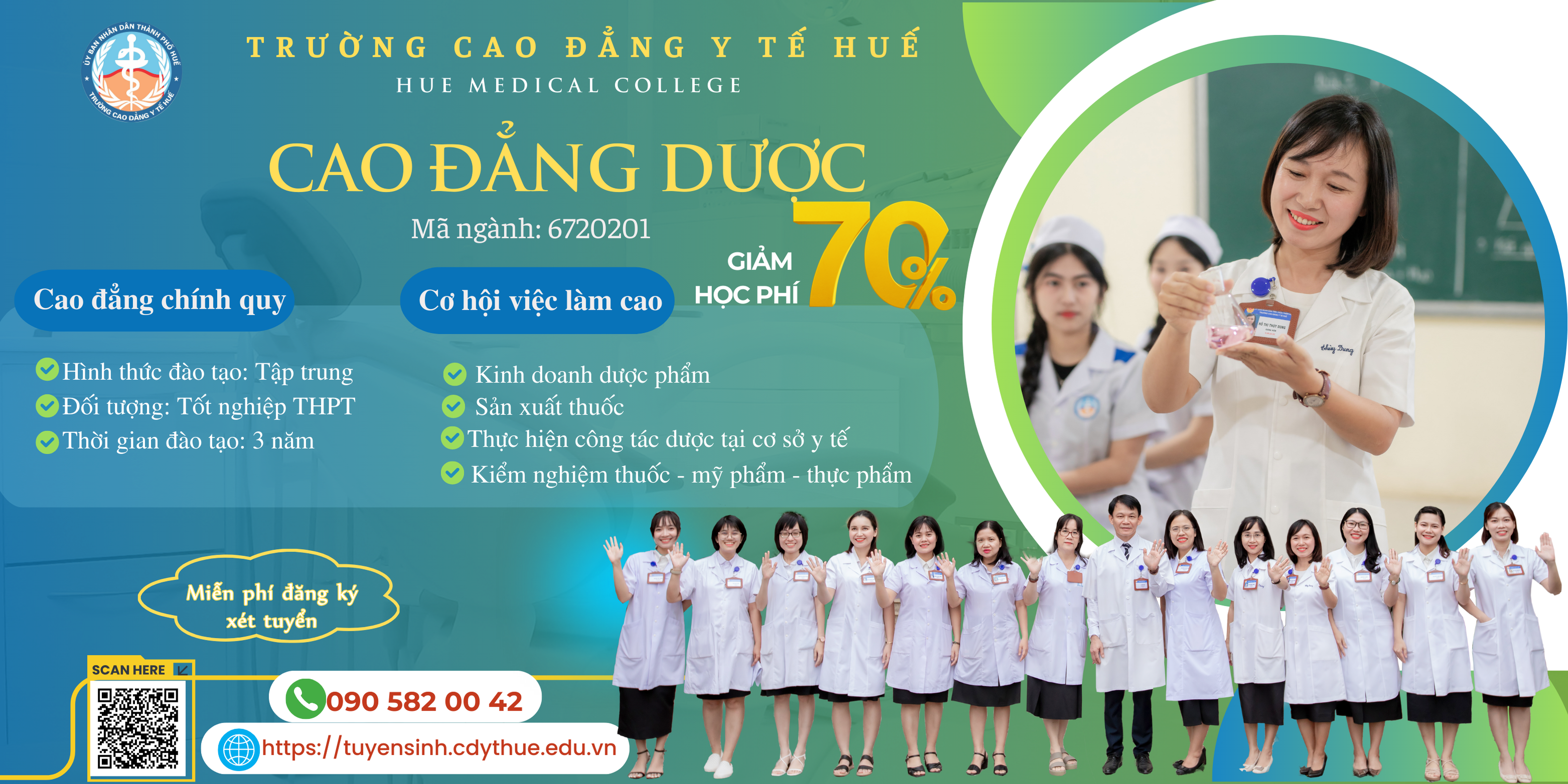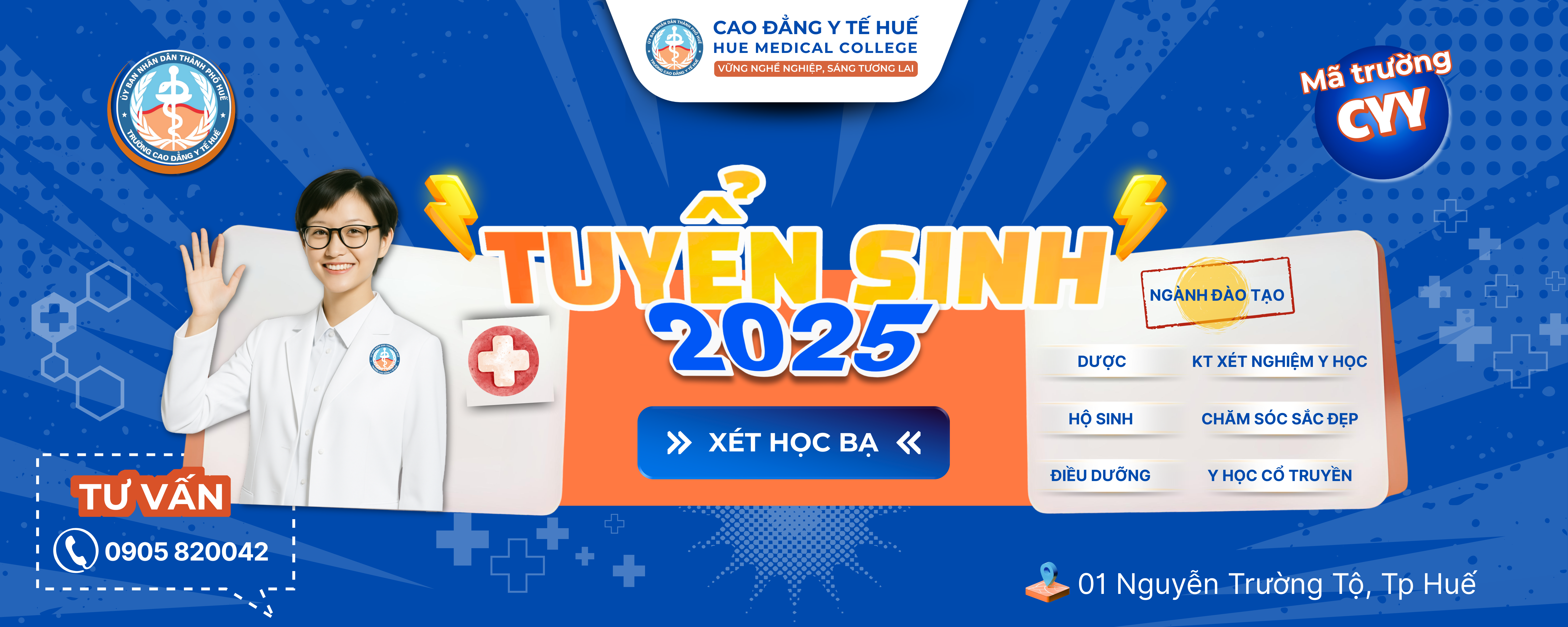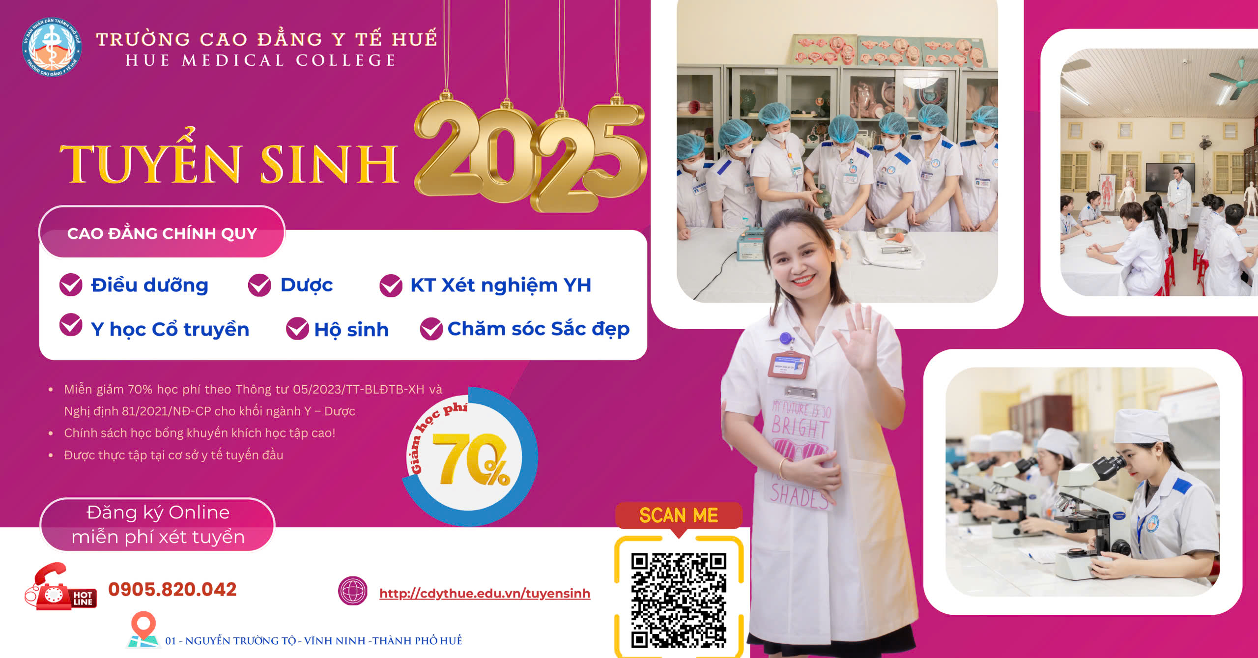 Trường Cao đẳng Y tế Huế thông báo về việc tuyển sinh năm 2025 1. Ngành nghề, chỉ tiêu, lệ phí xét tuyển TT Tên ngành Mã ngành Hình thức đào tạo Tổng chỉ tiêu Vùng tuyển I Cao đẳng khối ngành Y – Dược Toàn quốc 1 Điều dưỡng 6720301 Chính quy, Liên thông […]